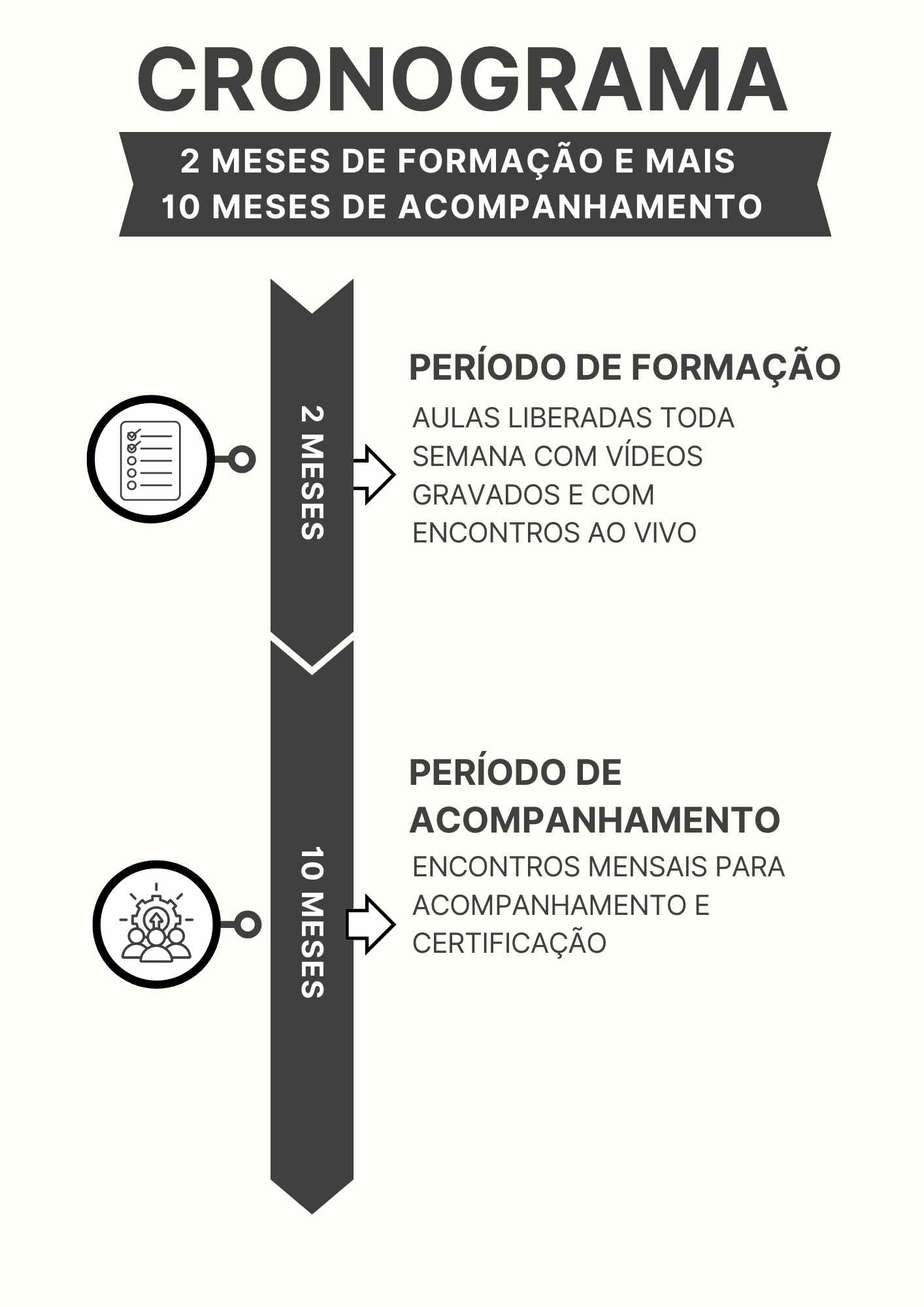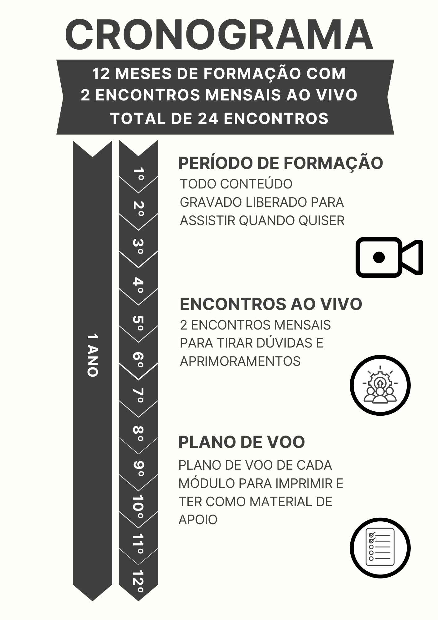 E depois mais 10 meses, você terá 1 encontro por mês, com acompanhamento para tirar dúvidas.