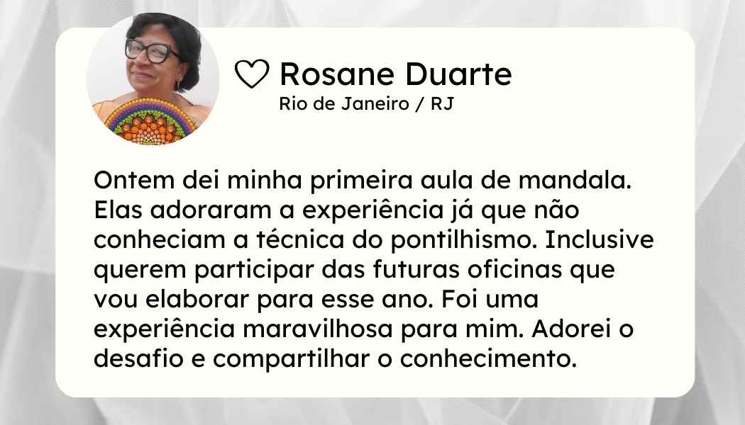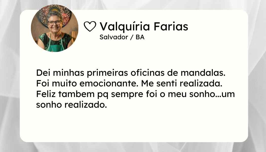 Em cada aula de mandalas, surgem momentos únicos de troca, aprendizado e inspiração. Como professora, você não apenas ensina técnicas, mas cria experiências de acolhimento e pertencimento. Cada olhar, cada sorriso e cada cor escolhida se transformam em laços que fortalecem a jornada de todos. Essa é a experiência que espera por você: ensinar e, ao mesmo tempo, viver a magia da conexão através da arte.