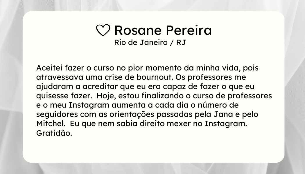 Não é um curso comum. É um acompanhamento próximo, construído a partir de anos de experiência prática, com milhares de alunas impactadas e um método validado na vida real.